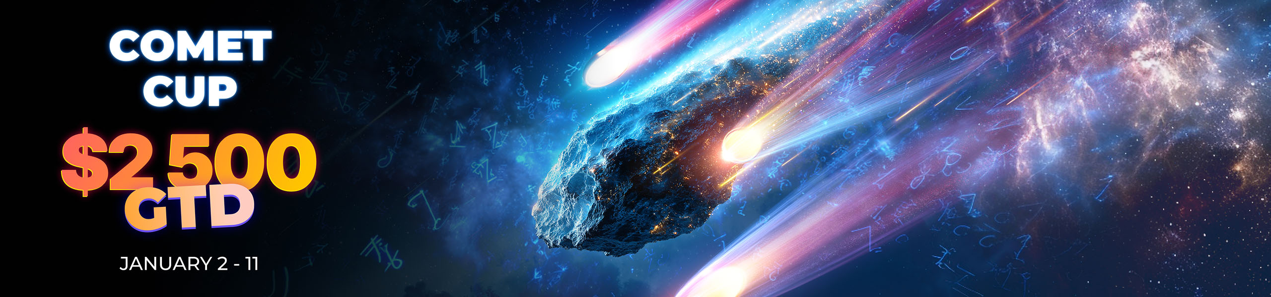 Del 2 al 11 de enero, el Comet Cup regresa. Un formato ya conocido, una garantía sólida y premios garantizados en la final. Comet Cup es un torneo de varios días con vuelos iniciales (Dia 1) y un Dia Final común (Día 2), donde se disputa un pozo garantizado de $2 500.